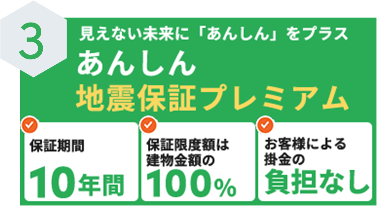 地震の揺れによる全壊、大規模半壊、中規模半壊、半壊のいずれかに該当した保証対象物件の建替え、または補修費用を保証いたします。役務を提供するものであり金銭の支払いは行いません。