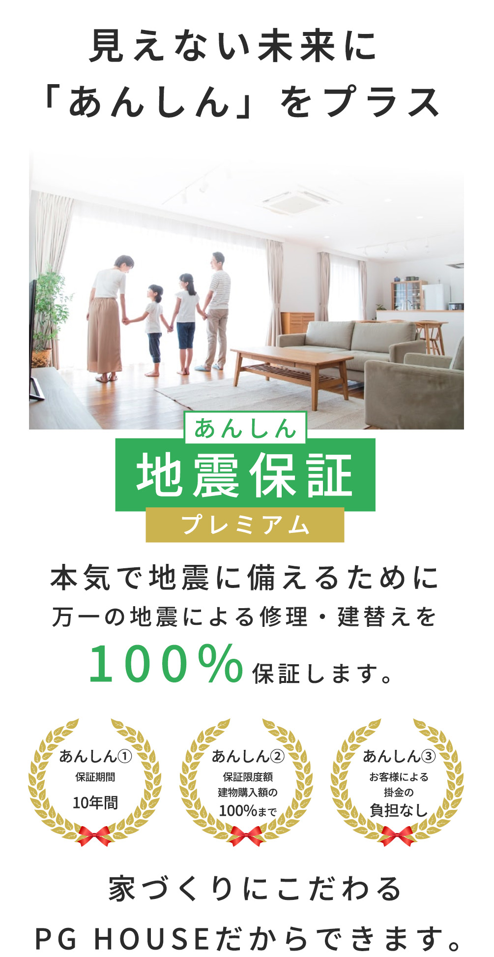 PG HOUSEでは建てて終わりではなく、建ててから一生涯安心して暮らして頂くための取り組みにも力を入れております。地域密着企業としての責任をもって、誠意のある対応をいたします。