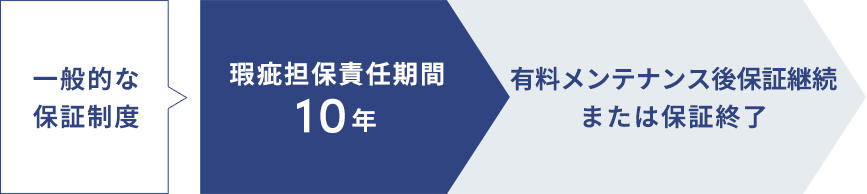 一般的には、最低限の10年間のみ保証し、それ以降は『有償』メンテナンスを前提に保証延長されるケースが多いです。